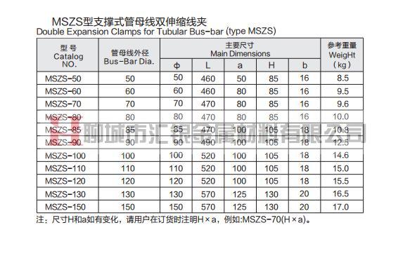 MSZS型支撐式管母線雙伸縮線夾